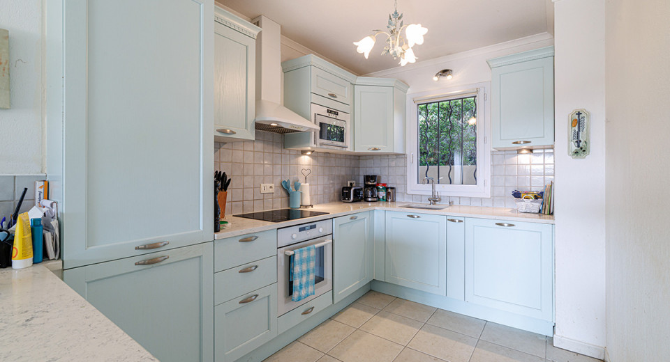 This rare, Provencal-style semi-detached house in a gated community with swimming pool is just 1.3 km from the sea and sandy beaches. In a dominant position in the residence, the house is not overlooked.